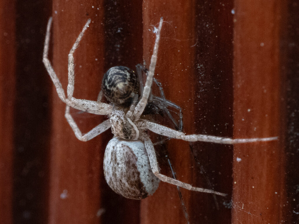 Ein wohl häufige, aber unscheinbare Spinne. Von weniger als vier Millimetern Länge bei den Männchen beginnend, können die weiblichen Tiere bis zu acht Millimeter erreichen. Die Braune Krabbenspinne lauert ihrer Beute auf, um sie dann blitzschnell zu überraschen. Sie überwältigt dabei selbst größere Insekten und, wie auf den Bildern zu sehen, gelegentlich andere Spinnen.